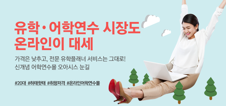 요즘 20대들의 생활 트렌드를 논할 때 ‘가격(Price)’과 ‘가치(Value)’, 이 두 단어를 빼고는 이야기하기 어렵다. 이들은 본인이 가치 있다고 생각하는 것에는 가성비를 고려해 적극적으로 투자하곤 하는데, 이를 통해 ‘O2O(Online to Offline, 온라인과 오프라인이 결합하는 현상)’나 ‘욜로(Yolo, 후회 없는 오늘을 위한 투자)적 소비방식’이라는 새로운 문화를 만들어냈다. 그리고 지난해 11월, 유학시장 최초로 탄생한 신개념 온라인 어학연수몰 ‘오아시스’ 또한 20대들의 눈길을 사로잡고 있다.