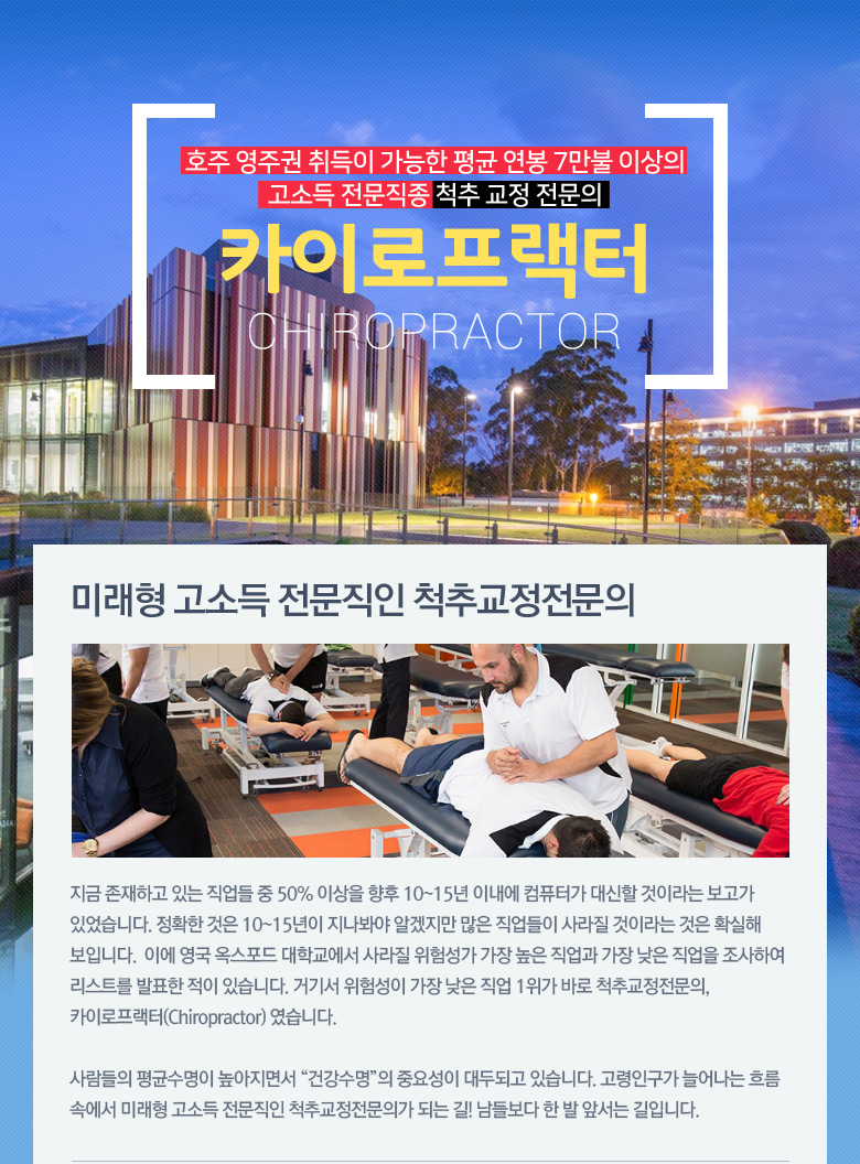 고소득 미래형 전문직, 척추교정전문의(Chiropractor)가 되는 길,