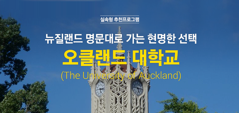 오클랜드 대학교(University of Aucklan)는 1883년 설립된 뉴질랜드 최고의 대학으로 지난 2016년 세계대학랭킹 81위에 오르는 등 세계적인 명문대학들과 어깨를 나란히 하고 있습니다. 오클랜드 대학교는 QS 대학평가에서 연구, 취업률, 교육, 시설, 국제화 혁신 분야에서 높은 평가를 받은 QS Five Star Plus 교육기관이기도 합니다. 오클랜드 대학교는 또 공동 연구 및 학문적 교류를 갖는 대학 공동체 Universitas 21의 회원 학교이며 뉴질랜드에서 유일하게 태평양지역 대학교 연합회(Pacific Rim Universities)의 회원 학교입니다.