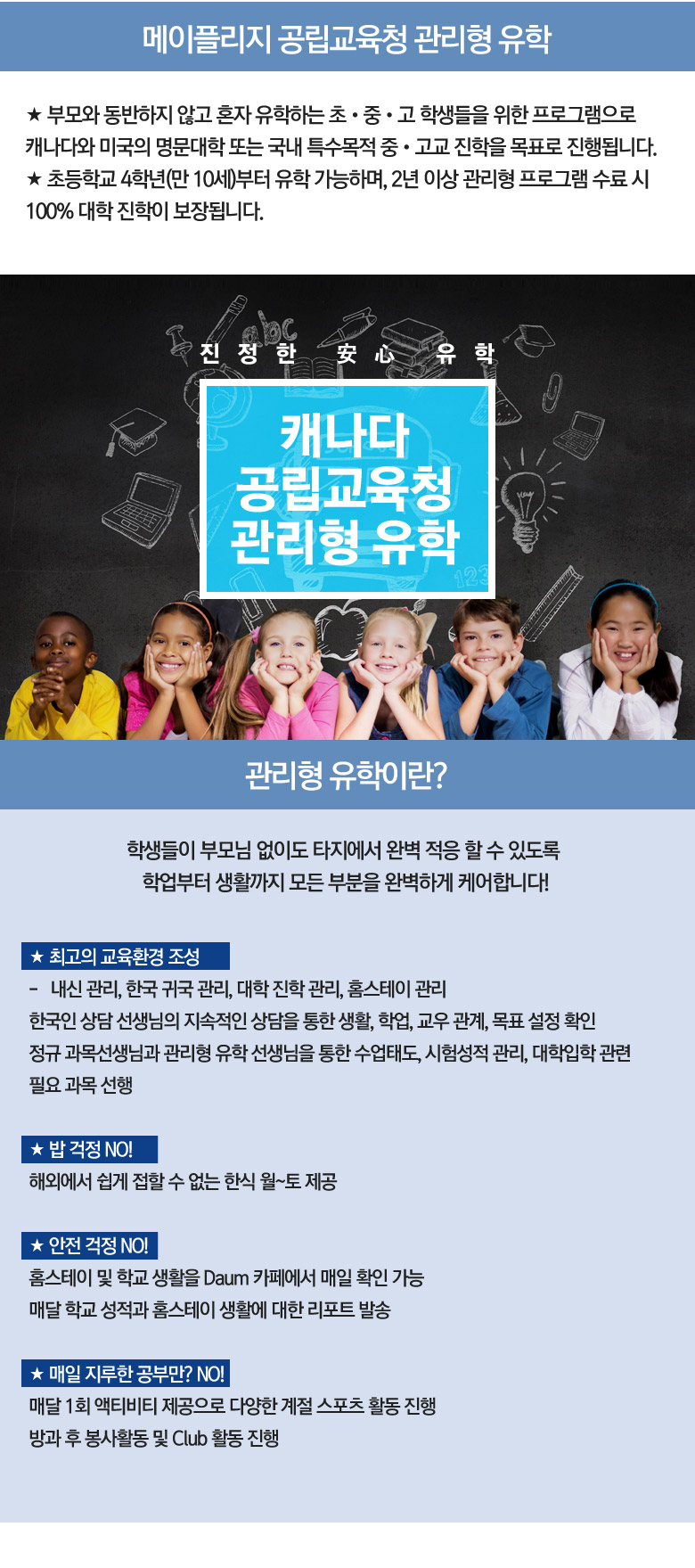 아이 혼자 가도 걱정 없는 관리형 유학에 대한 자세한 정보가 궁금하시다면?