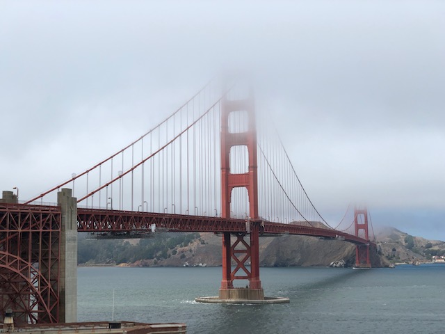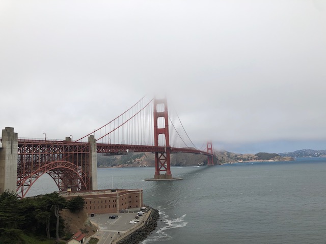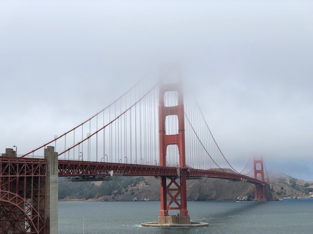 그쪽에 워낙 구름이 잦아서 파란 하늘의 금문교를 볼 수는 없었어요.
