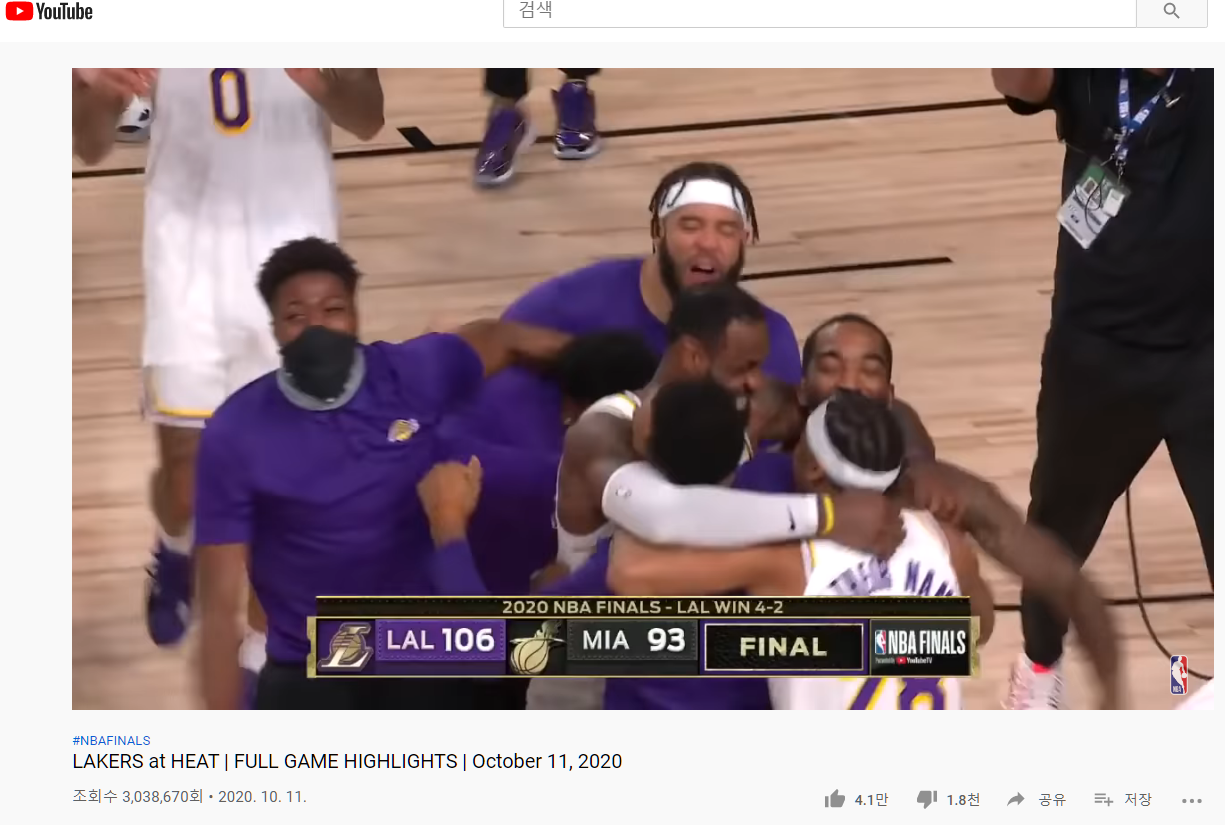 Miami와의 Final 경기 또한 Lakers가 압도적으로 4승을 하지는 않았습니다.