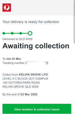 호주에서 택배를 받을 때에는 자신이 사는 주소지에서 바로 받아볼 수 있지만,
