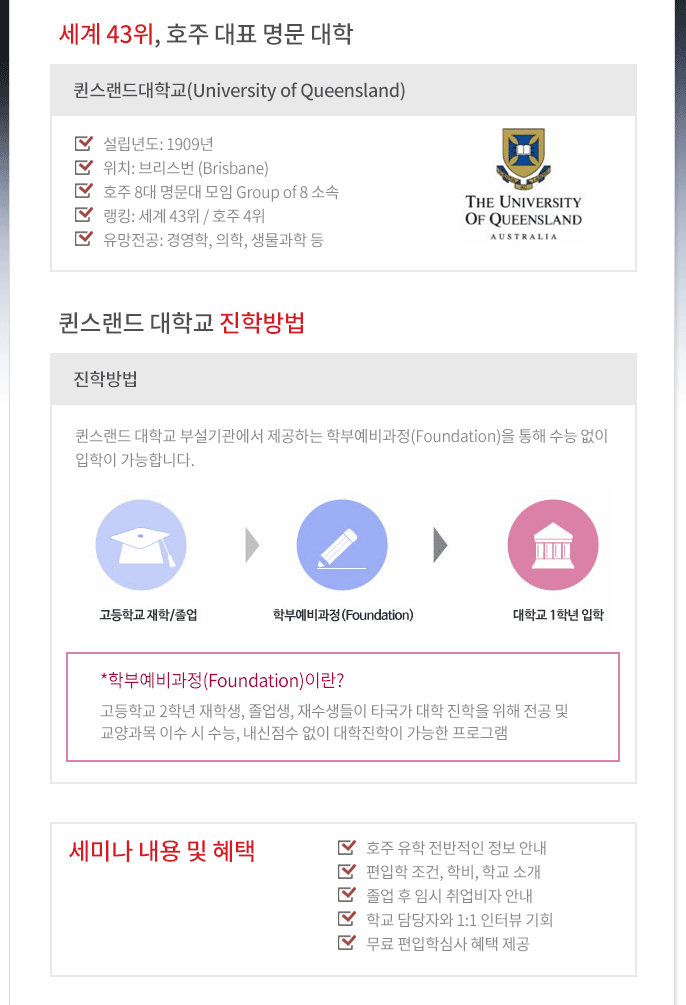 세계 43위! 퀸스랜드대학 편입학 설명회 개최