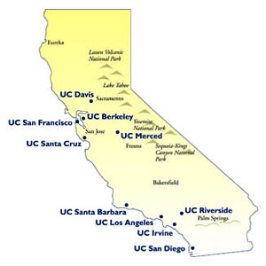 * UC 10개 캠퍼스 UC Davis, UC San Francisco, UC Santa Cruz, UC Santa Barbara, UC Los Angeles, UC Irvine, UC San Diego, UC Riverside, UC Merced, UC Berkeley