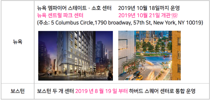 ○ 카플란 보스턴 두 개 센터는 2019년 8월 19일부터