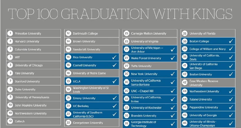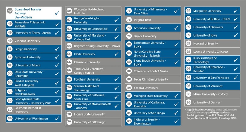 Kings 졸업생들이 진학한 미국 100대 명문대학