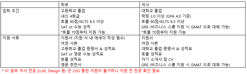 ○ CEG를 통해 IIT 지원 시 학부 $15,000/년간, 석사 $8,000 장학금 지원