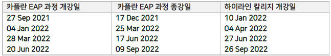■ Kaplan의 EAP 과정 및 하이라인 컬리지 학사 일정