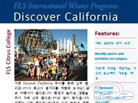 FLS의 시트러스 컬리지 센터에서 제공하는 캘리포니아 투어(Discover California)를 통해 남부 캘리포니아의 최고의 볼거리를 체험해 보세요! 캘리포니아는 멋지고 깨끗한 환경과 놀라운 경험을 하기 위해 많은 여행자들이 찾아오는 인기 여행코스입니다. 본 투어프로그램을 통해 학생들은 유명한 도시인 패서디나(pasadena) 할리우드(Hollywood), 비버리힐즈(Beverly Hills)를 방문하여 디즈니랜드와 유니버셜 스튜디오(Universal Studio)에서 여러 놀이기구와 모험을 즐길 수 있을 것입니다. 그리고 아름다운 바닷가에서 캘리포니아의 태양을 느낄 수 있는것은 물론이구요! 이 프로그램은 시트러스대학에서 주최하고 있으며 시트러스 대학은 로스엔젤레스 가까운 곳 글렌도라 라는 안락한 마을에 위치하고 있어 대도시의 복잡함에서 벗어나 소도시의 안락함 또한 만끽할 수 있습니다. 학급 규모도 소규모로 구성되어 있어 교수님에게 개별적인 교육을 받기에 적합하고 실력이 뛰어난 교수진으로부터 영어를 배우며 세계 각국 여러친구들도 사귈 수 있습니다. 또한 엄선된 홈스테이 가족들을 통해 새로운 미국문화를 체험하는데에 큰 도움을 줄것입니다.