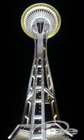 시애틀의 밤을 찌르는, 우주 바늘! 파리에 에펠탑이 있다면, 시애틀에는 스페이스 니들(Space Needle)이 있습니다. 외계의 비행선이 하늘 위에 정차한 채 바늘과 같은 통로로 지구인들을 초대하는 것 같은 이 건축물은 1962년 시애틀 세계 박람회 때 처음 문을 열었다고 합니다. 360도로 돌아가는 전망 레스토랑의 창은 시애틀의 야경을 보기에 가장 좋은 곳인데, 거기에서 내려다보면 왜 이 도시의 시민들이 잠을 잊고 사는지 잘 알 수가 있습니다.