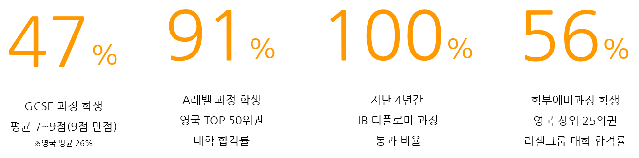 - 영국 캠퍼스 입학과 동시에 영국 상위 30여개 대학 조건부 입학 보장 - 미국 캠퍼스 입학과 동시에 미국 명문 일리노이 공대 조건부 입학 보장 - 진학지도팀의 일대일 입시 컨설팅 제공 - 대입 관련 시험 준비 지원 - 에세이 및 원서 작성 지도 - STEM, 의대, 약대, 예술대 등 전공 특화 수업 제공