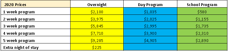 - 주당 20시간 영어수업+ 주말 체험+ 방과 후 액티비티+ 아침,점심,저녁+ 보험+ 교재비+ 교통비+ 숙소비+ 졸업장+ 픽업이 포함된 프로그램
