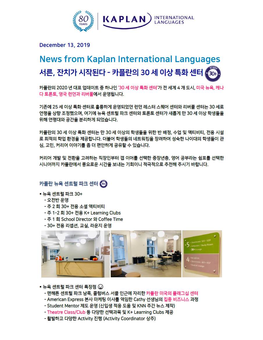 Kaplan의 30세 이상 특화 센터를 소개합니다~