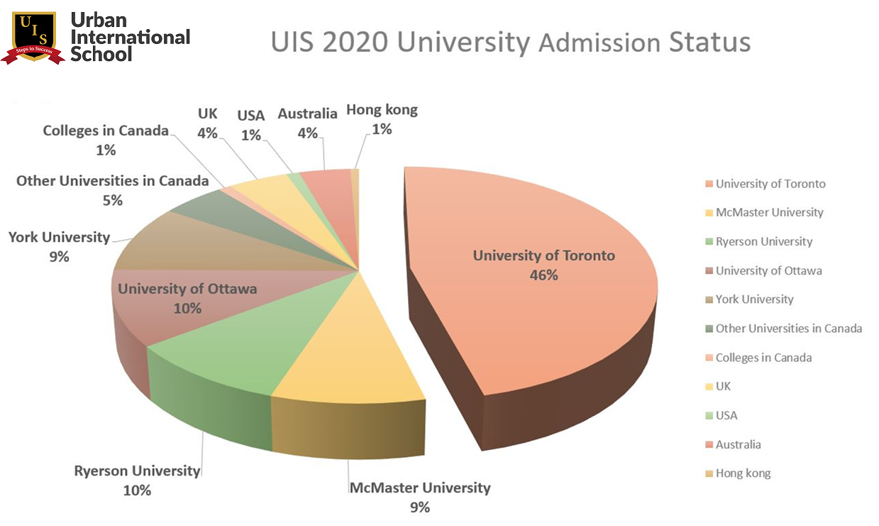 졸업생 대학 진학률 90% 이상 졸업생 10% - 미국, 영국, 호주, 한국의 명문대 진학 대학 진학생 45% - 캐나다 1위 토론토 대학교 합격
