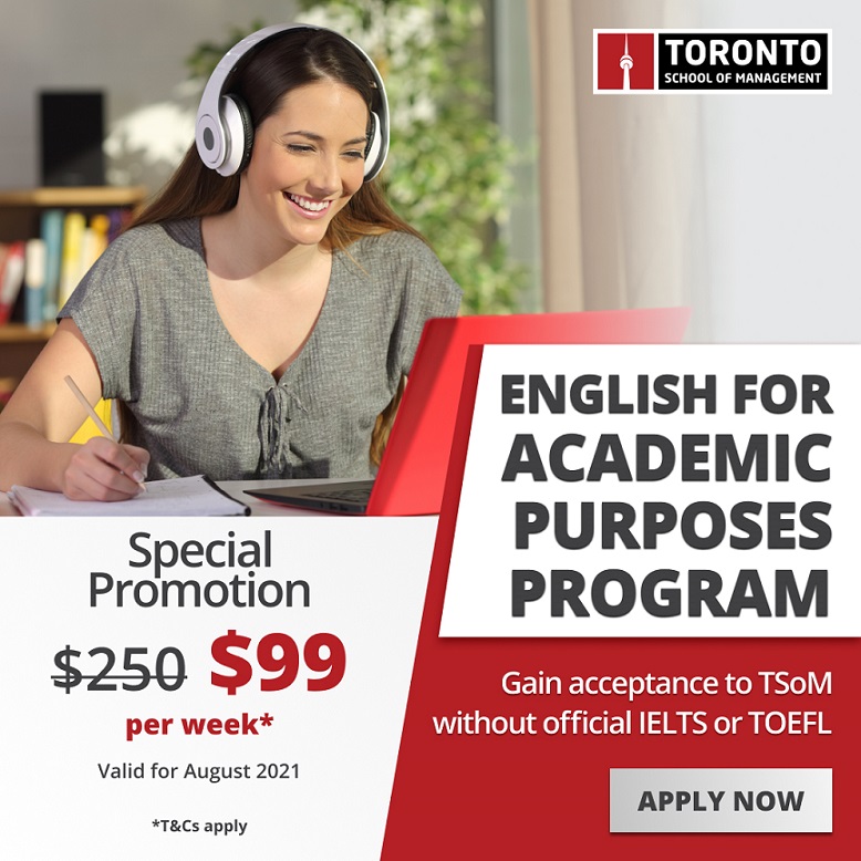 캐나다 TSoM(Toronto School of Management)의 온라인 EAP(English for Academic Purposes)의 장학혜택 안내입니다.