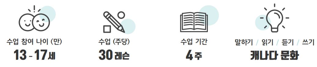 전체 4주 참여를 가장 권장하지만 학생의 나이가 어려 부모님과 오래 떨어져있기 어렵거나, 부모님과 처음 떨어져 해외에서 생활하는 것을 부담스러워 하는 학생은 2주나 3주 참여도 고려해 볼 수 있습니다.