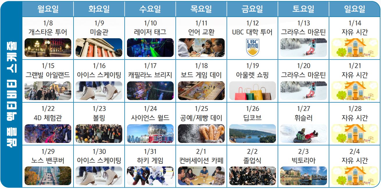캐나다 밴쿠버 청소년 겨울 방학 영어 캠프, 2024년 1월