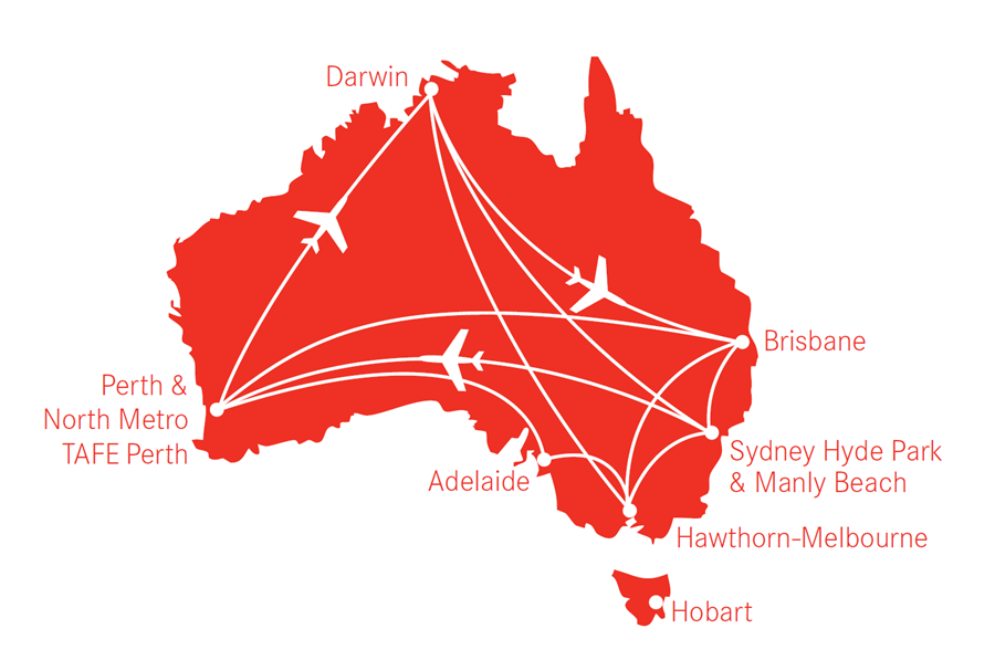 - 브리스번, 다윈, 맨리 비치, 퍼스, 시드니 하이드 파크 센터 중 한 곳에 25주 이상 등록