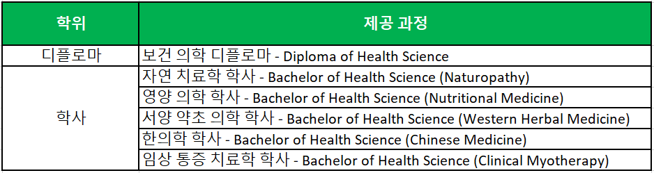 자연 치료학 (Natural Therapy) 전문대학