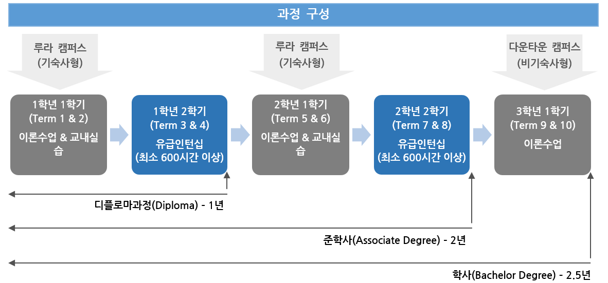ㅁ 과정기간: 총 2.5년 (10 Terms): 2 Terms가 1학기이며, 1 Term은 12주 동안 진행