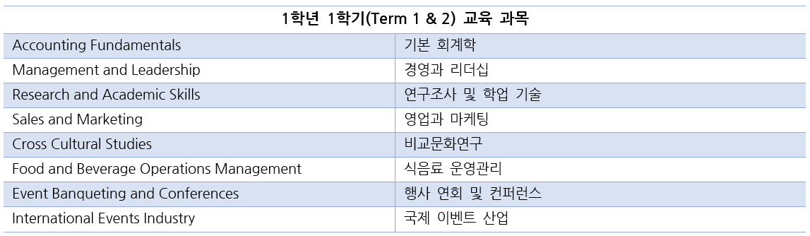 국제호텔경영대학 세계 3위 '블루 마운틴' - 국제 이벤트 경영학 학사