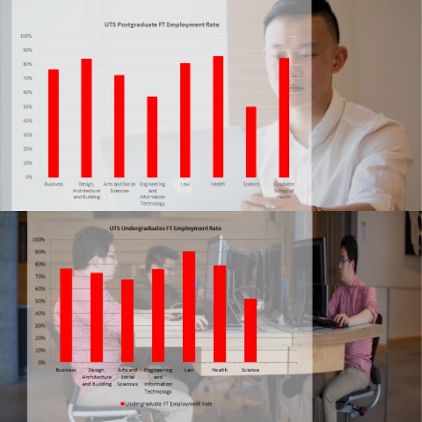 즉 UTS 졸업생의 73%가 졸업 후 3개월 안에 취업에 성공했으며, 이는 호주 대학 전체 평균인 69%보다 훨씬 높은 수치입니다.