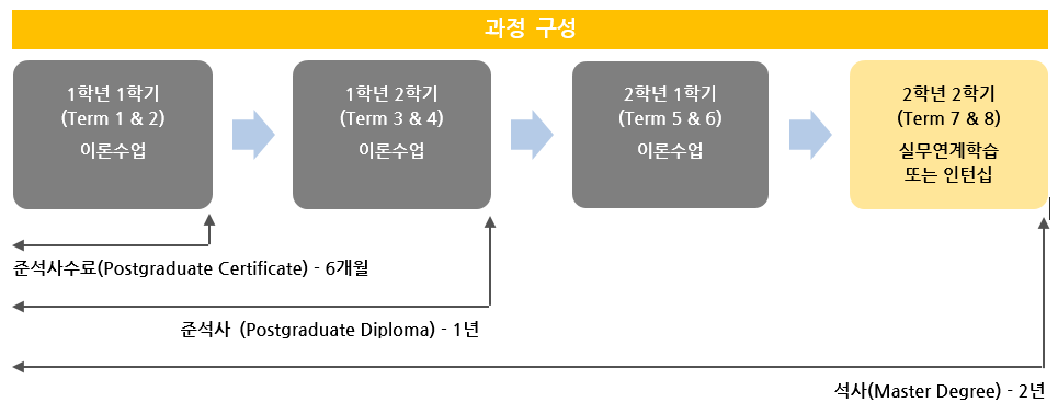 ㅁ 과정기간: 총 2년 (8 Terms): 2 Terms가 1학기이며, 1 Term은 12주 동안 진행