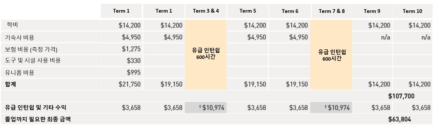 ■ 학비 및 유급 인턴쉽을 통한 수익 차트 예시 ■