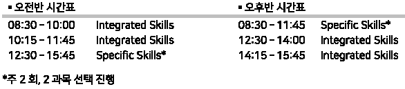 ○ 제공 과정: 일반영어, 집중영어, AS/AY, IELTS 시험 준비, Cambridge 시험 준비, EAP