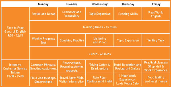 ○ 수업시간: 주당 25시간 (일반영어과정 3시간+ 고객 서비스 응대 과정 2시간)