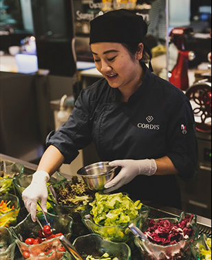 A. 오클랜드의 The Cordis Hotel(구, Langham Hotel)에서 부주방장으로 일하고 있어요. 음식 준비도 하고, 메인 주방장님도 돕고요.