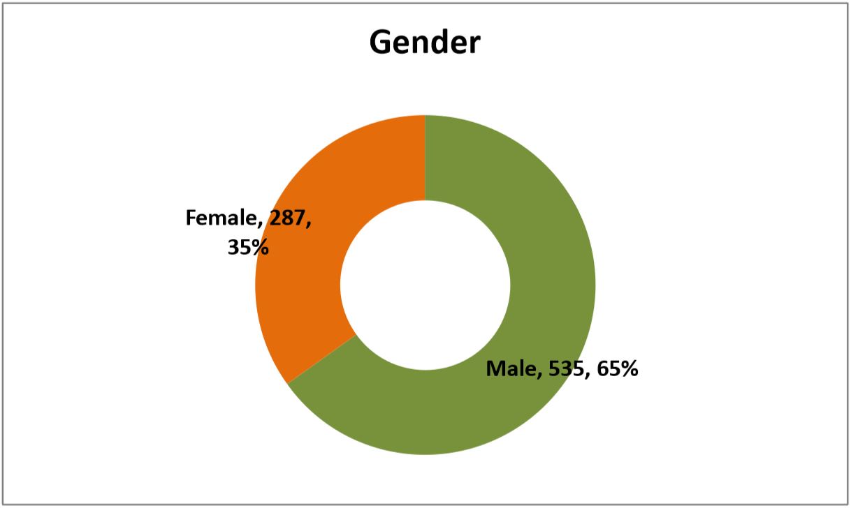 ■ 여학생 : 남학생 = 287명(35%) : 535명(65%)