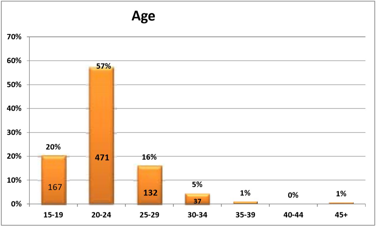 절반 이상의 학생이 20대 초로 구성되어 있으며, 30세 이상의 학생들은 대부분 석사과정에서 공부하고 있어요.