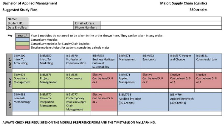 ○ 전공명: Bachelor of Applied Management (Supply Chain Logistics)
